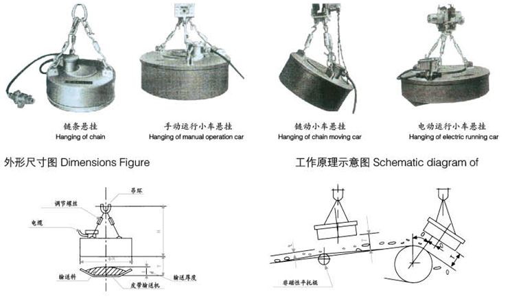 本系列產(chǎn)品是為從磁性礦石中除去有害鐵件而專門設(shè)計(jì)的。其工作制為TD=100%.使用時(shí)懸掛在皮帶輸送機(jī)上,并需配以電動(dòng)小車,金屬探測(cè)器,PC程控整流控制設(shè)備。經(jīng)吸引、分選、除鐵、回收等程序?qū)崿F(xiàn)自動(dòng),并安全地從輸送的磁性礦石中除去有害鐵件,同時(shí)將被吸的礦石自動(dòng)送回皮帶輸送機(jī)上得到回收。